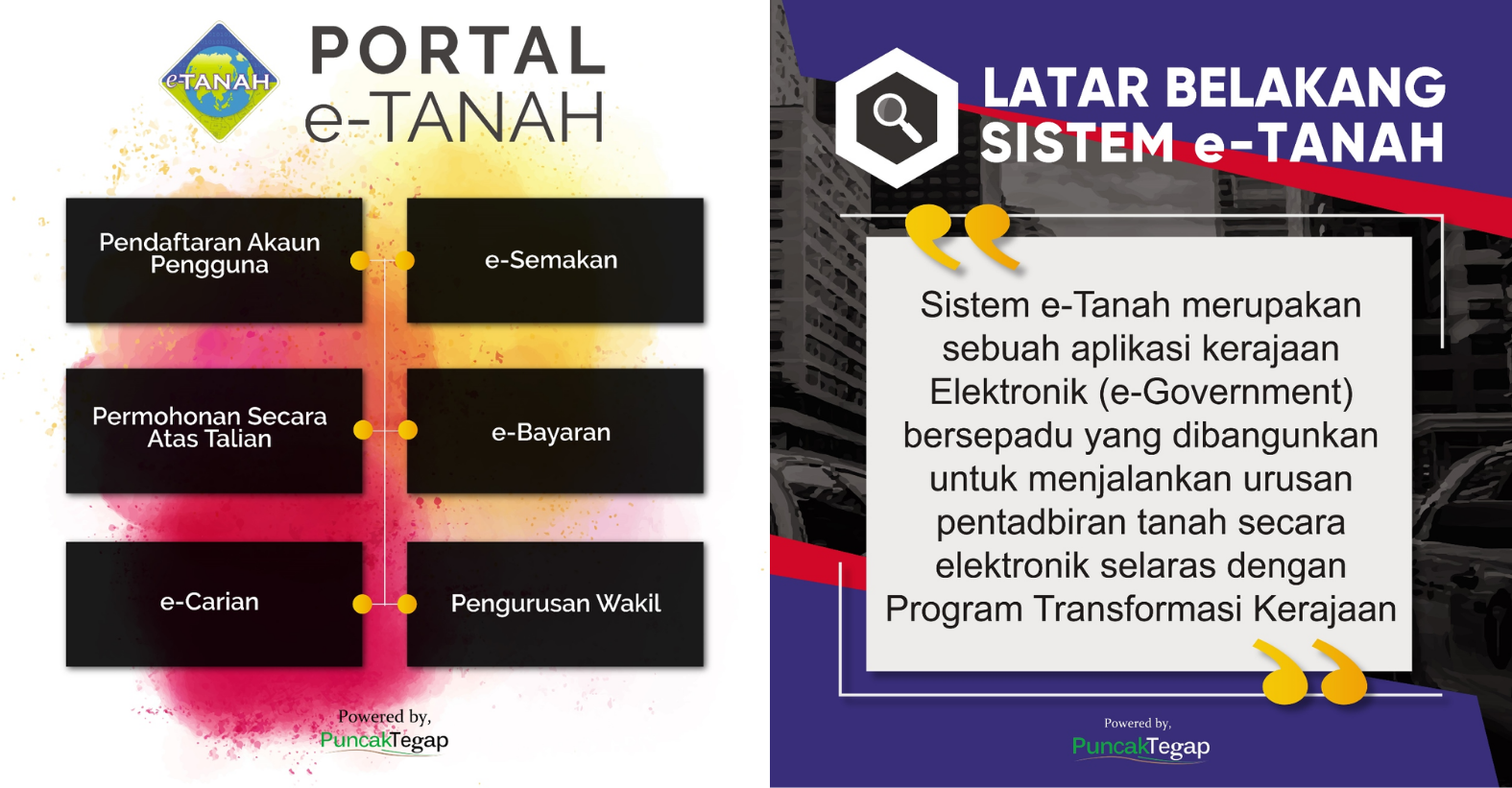 eTanah ialah sistem rasmi kerajaan Malaysia yang direka khas untuk mudahkan semua urusan berkaitan tanah secara digital.